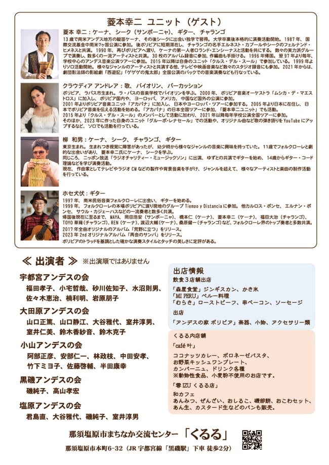 出演:塩原アンデスの会、宇都宮アンデスの会、大田原アンデスの会、小山アンデスの会、